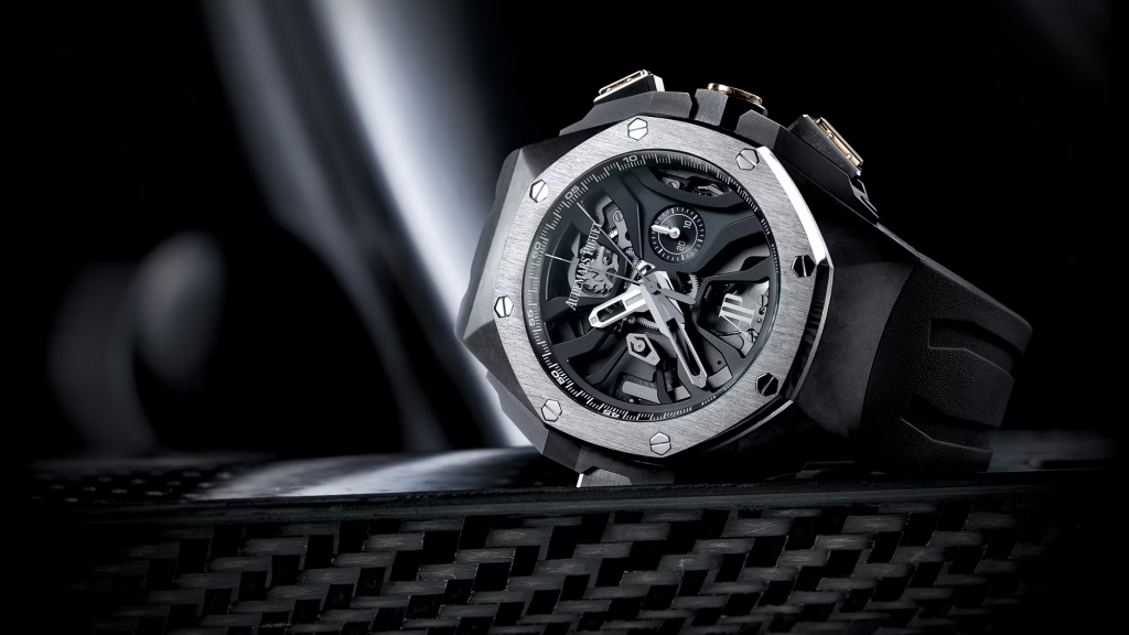 El diseño sigue la línea de los Royal Oak Concept, que son como el lado experimental de Audemars Piguet. No tienen la misma estética que el Royal Oak clásico de Gérald Genta, sino una versión más agresiva, más técnica, como si fueran relojes que un astronauta usaría.